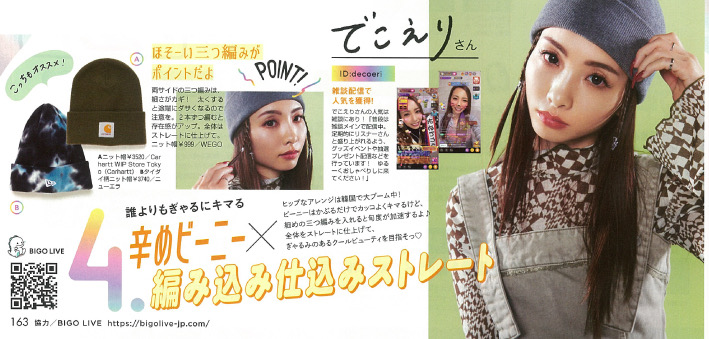 2022.04.20 でこえり ViVi5月号掲載! 12月に開催された【BIGO雑誌タイアップ掲載イベント】の<中堅部門>で見事1位に輝いたでこえり(BIGO ID:decoeri)が5月号のViViに掲載されました! 前の記事へ 次の記事へ ニュース一覧
